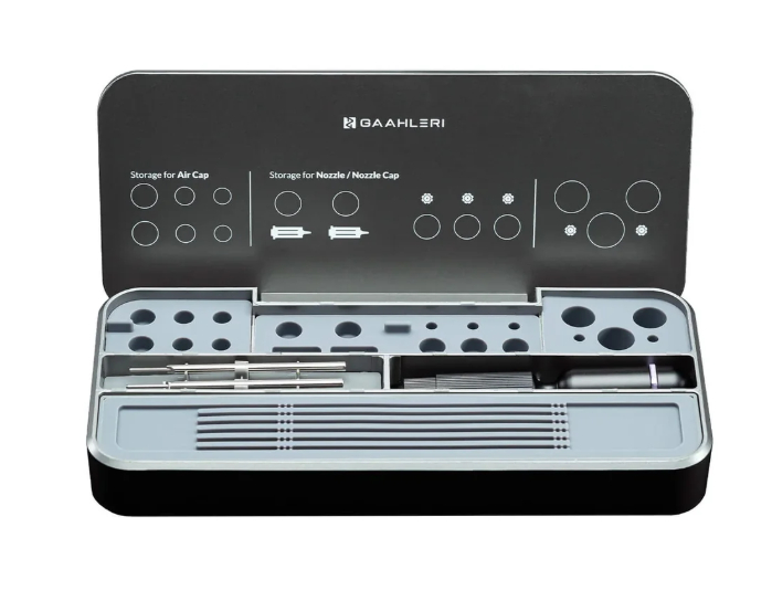 Иглы Защитные колпаки Ёмкости Сопла (форсунки/дюзы) материальные Уплотнения Толкатели, фиксаторы Рычаги управления Регуляторы Пружины Клапаны, корпуса клапанов Диффузоры, корпуса диффузоров и распылителей Держатели иглы Втулки, обоймы Винты, гайки, шайбы Наборы для аэрографов