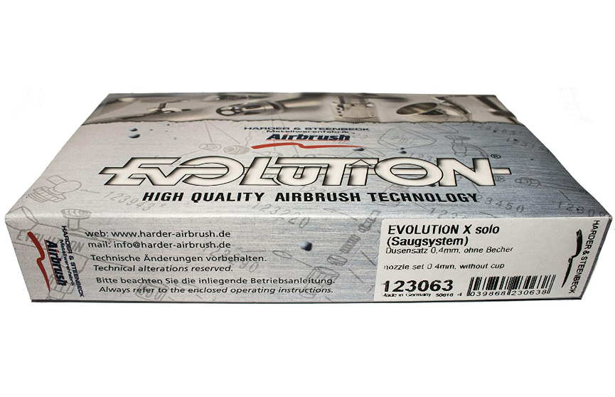 Фирма Harder&Steenbeck представляет вам самую популярную серию аэрографов Evolution. Данные аэрографы прекрасно подойдут, как начинающему аэрографисту так и уже давно рисующему художнику, желающему приобрести качественный, надежный универсальный инструмент. Модели данной фирмы прекрасно подойдут тем, кто хочет попробовать себя в аэрографии но пока не знает чем именно он хочет заниматься: росписью автомобилей, оформлением интерьеров или бодиартом, а может стендовым моделизмом... Приобретая даже самую простую модель, художник, в последствии, может ее усовершенствовать под свои задачи, как пожелает, приобретая разнообразные опциональные запасные части.