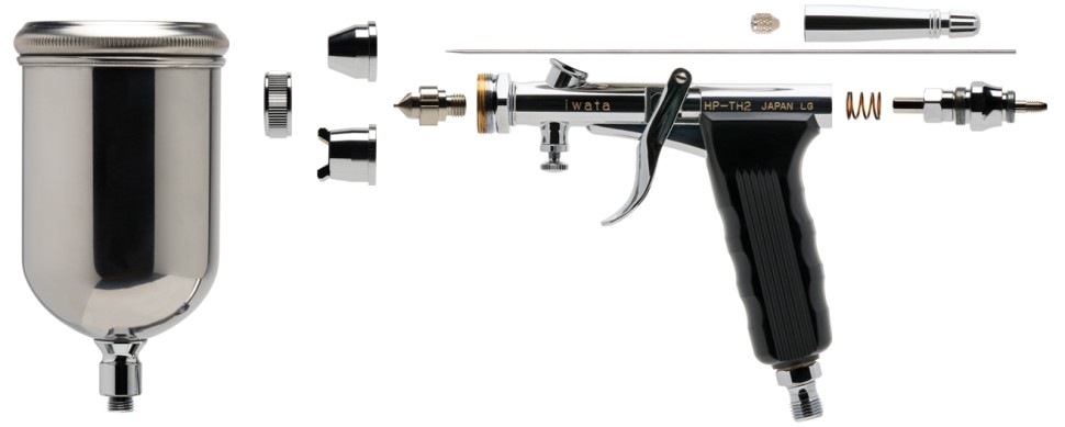 HP-TH2 включает в себя большой стакан для краски объемом 150 мл с крышкой, самый большой из всех аэрографов Iwata, который идеально подходит для смешивания большого количества цветов с простой очисткой. Функция предварительной установки позволяет вам быстро настроить мощность распыления, увеличивая контроль и согласованность, одновременно уменьшая усталость пальцев.
