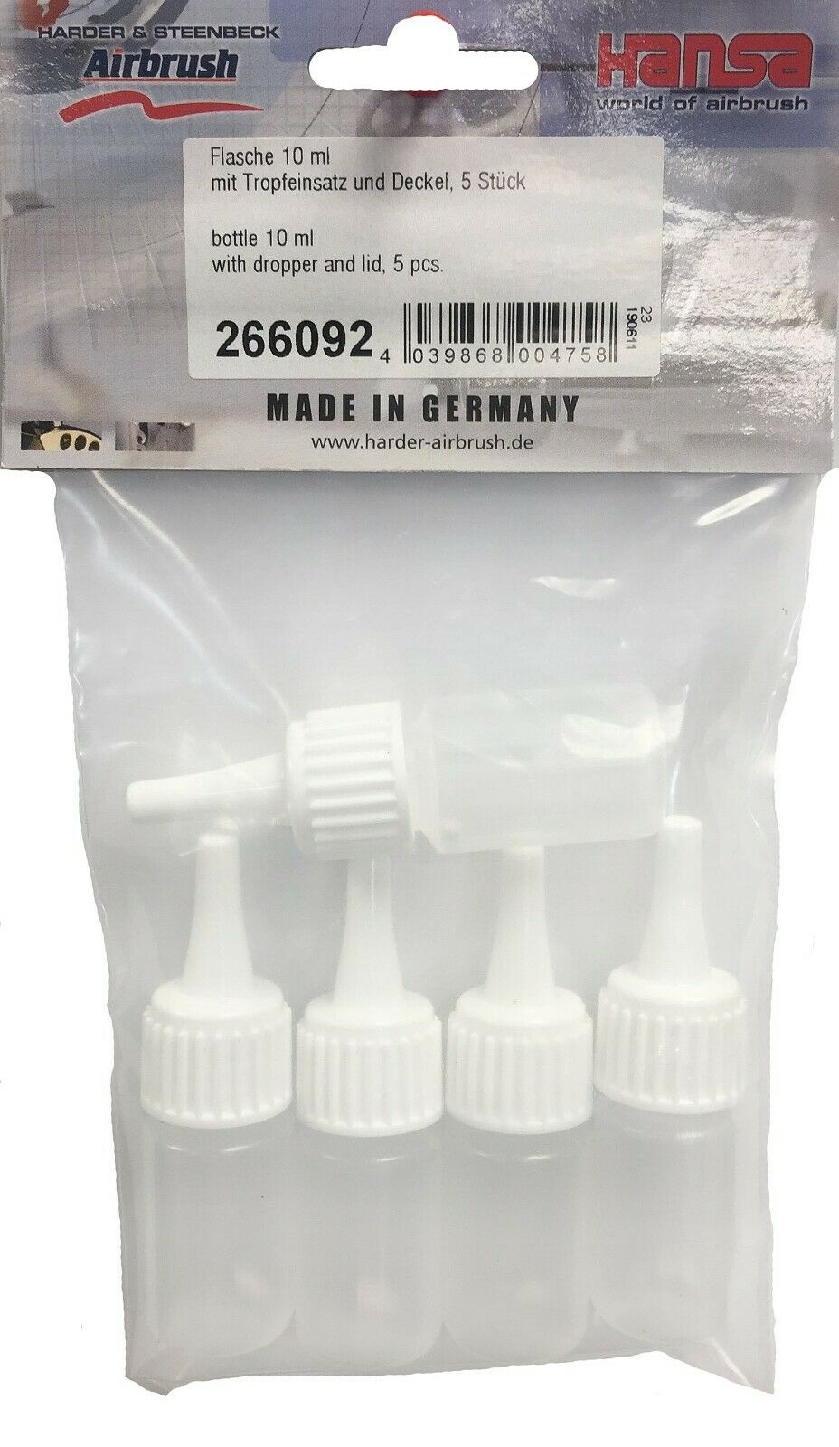 Harder&Steenbeck HS-266092 Пластиковая бутыль 10 мл с пипеткой и крышкой, 5 шт.