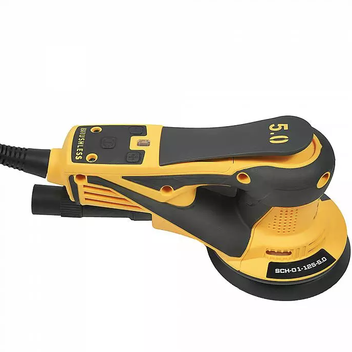 Эксцентрик с амплитудой 5 мм и диск диаметром 125 мм позволяют быстро и эффективно обрабатывать поверхность, а диапазон оборотов от 4000 до 10000 об/мин с электронной регулировкой даёт возможность точно подбирать режим под материал и задачу. Плавный пуск исключает рывки при включении, а тормоз подошвы обеспечивает дополнительную безопасность. Возможность подключения к пылесосу позволяет поддерживать рабочее место в чистоте. Вес всего 1 кг делает модель одной из самых удобных в своём классе.
