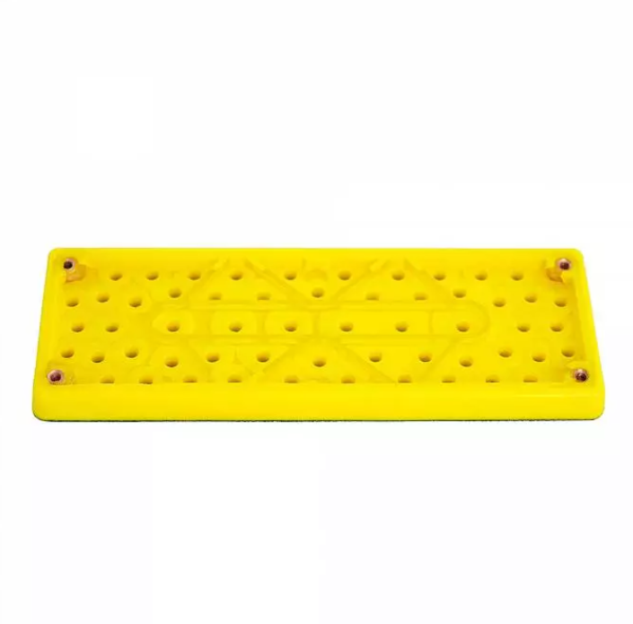 Эластичная рабочая поверхность снижает трение и перегрев абразивного круга, что и позволяет быстрее достичь качественной обработки поверхности. Усиленная конструкция корпуса гарантирует долговечность и способность выдерживать интенсивную эксплуатацию. Опора совместима с абразивными материалами на липучке (Velcro), что обеспечивает лёгкую замену расходников и минимальные простои.