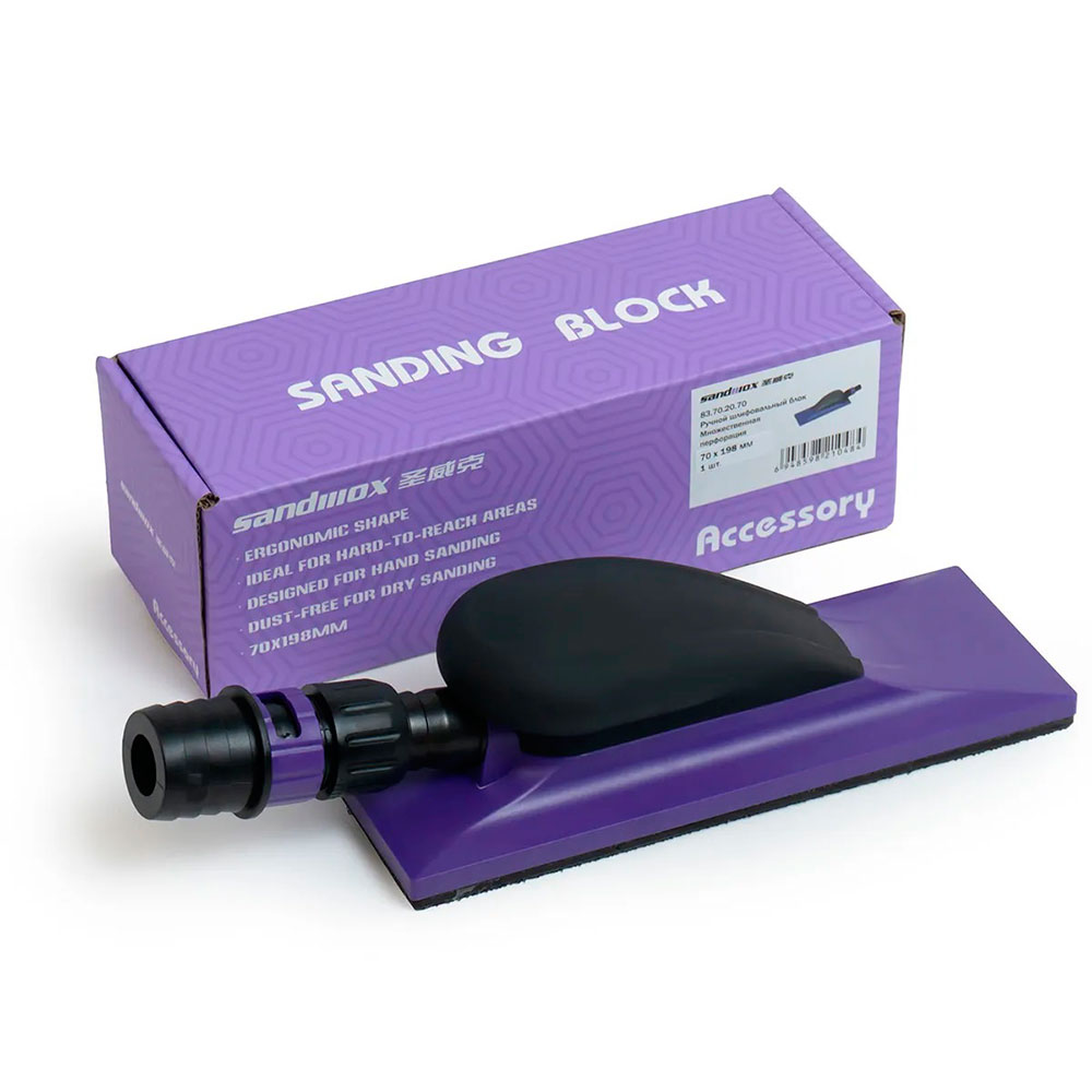 Размер 200 мм х 70 мм подходит для выполнения любых шлифовальных операций, особенно в кузовном ремонте. Имеет эргономичную форму с низким профилем. В сочетании с сетчатыми полосками Sandwox показывает превосходную производительность шлифования и эффективный отвод пыли.