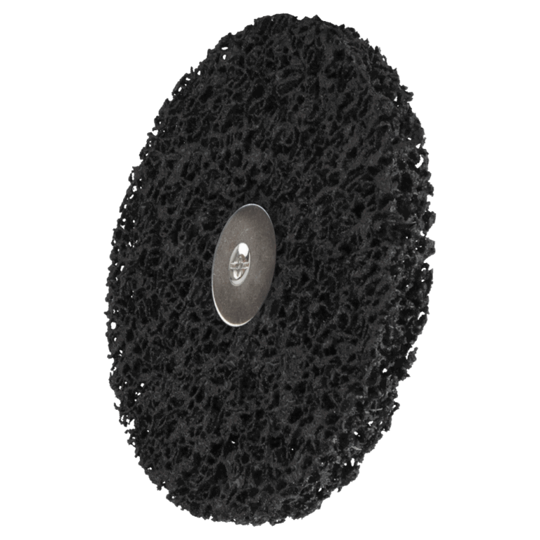Коралловые диски средней жесткости на 6-мм шпинделе (150 x 13 мм, medium), которые применяются для удаления ржавчины любого уровня. Широко используются также для ликвидации следов коррозии и клея, эпоксидных и ЛКП-покрытий, различного рода загрязнений. Имеют открытую агрессивную структуру и прочную режущую кромку. В качестве абразива выступает карбид кремния, а основой служит нейлоновая нитевая структура повышенной плотности. Рекомендуется использовать при частоте вращения 2500-3000 оборотов в минуту, что положительно сказывается на рабочих условиях оператора шлифовальной машинки. Также подходят для кузовного ремонта с тонколистовым металлом, так как при работе с ними практически отсутствует нагрев обрабатываемой поверхности. Крепление зачистного круга осуществляется с помощью хвостовика (Ø6 мм). Диск надежно устанавливается на прямую шлифовальную машинку с регулировкой оборотов.