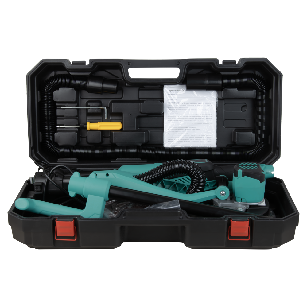 В комплекте: машинка, пластиковый кейс, мягкая диск-подошва 225 мм , жесткая диск-подошва 225 мм, ключ для подошвы, шланг для пылеудаления, набор переходников для шланга пылеудаления, инструкция по эксплуатации, гарантийный талон.