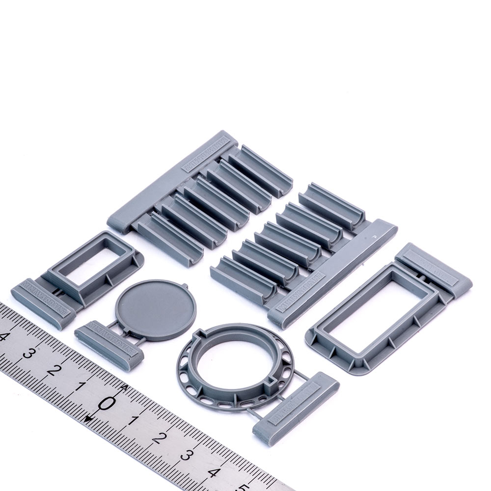 - Плата фототравления толщиной 0,5мм с решетками и вкладышами в люки с несколькими разными рисунками.