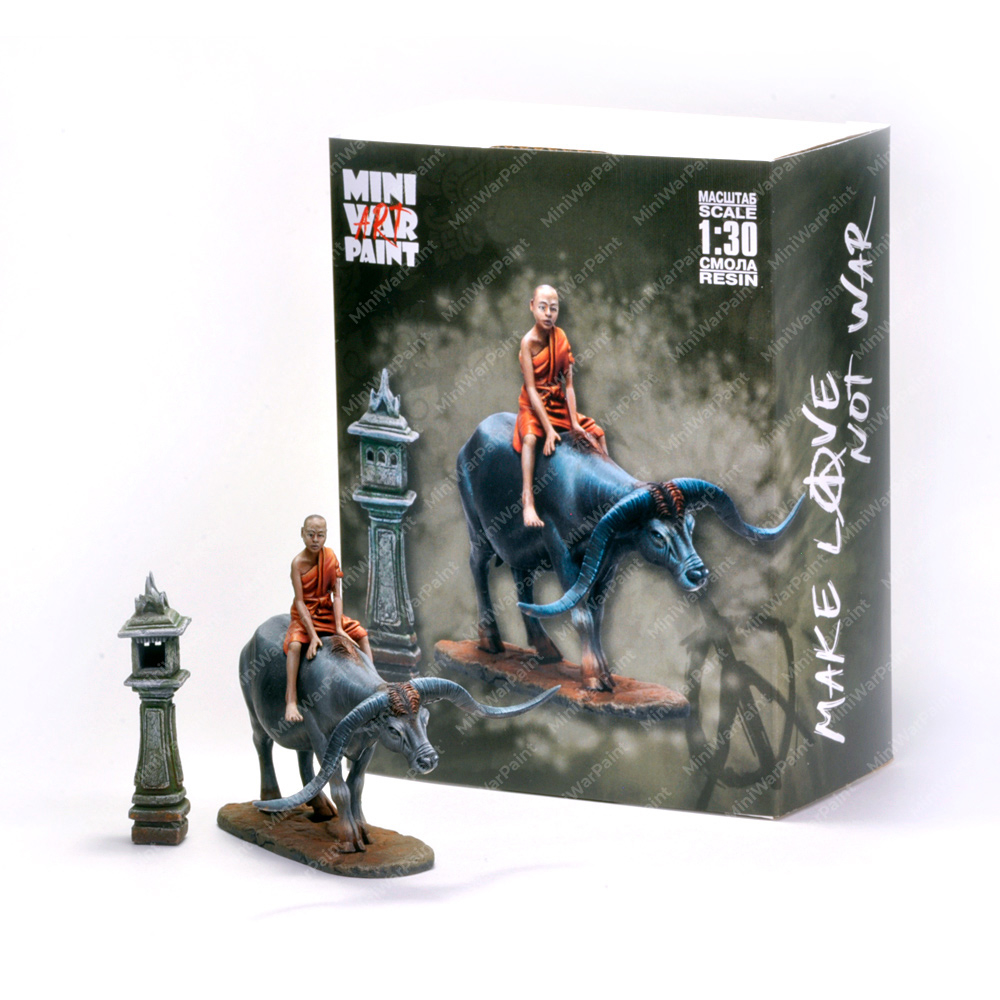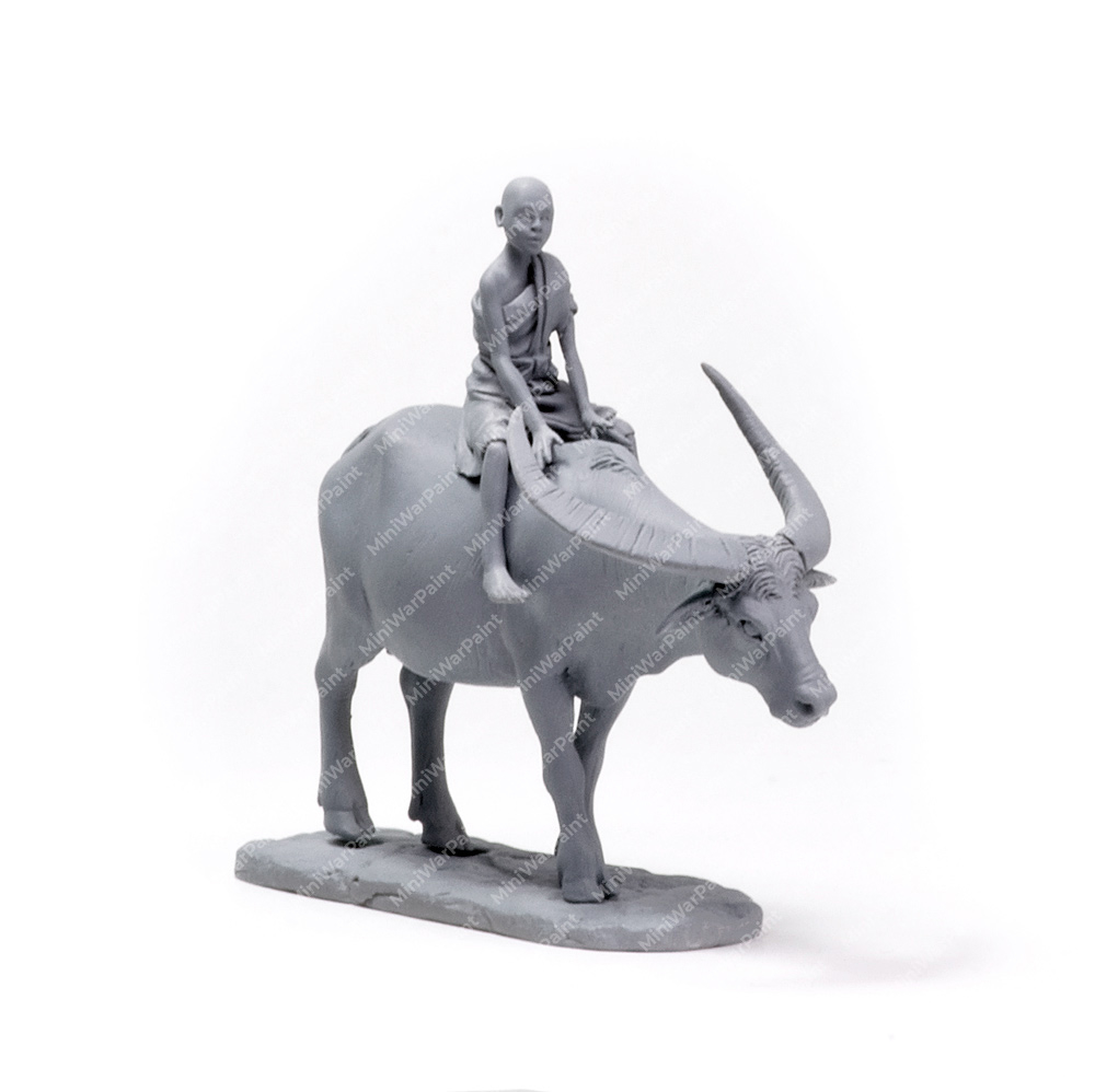 Фигура тайского мальчика-монаха верхом на буйволе. Набор из полиуретановой смолы из 12 частей. Буйвол имеет два варианта сборки. Скульптор Степан Николаев. Масштаб 1/30.