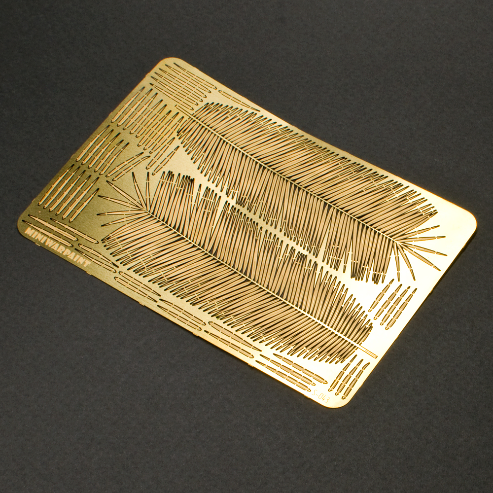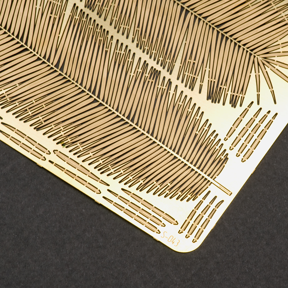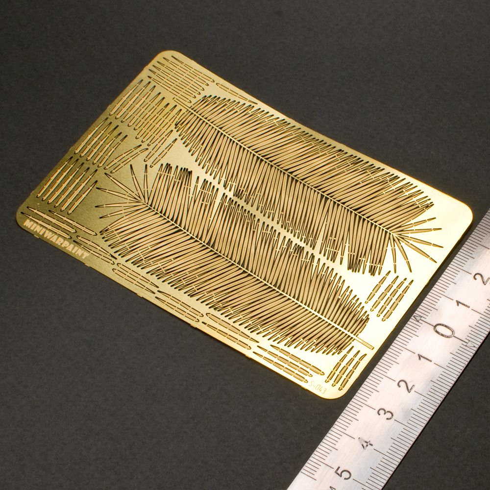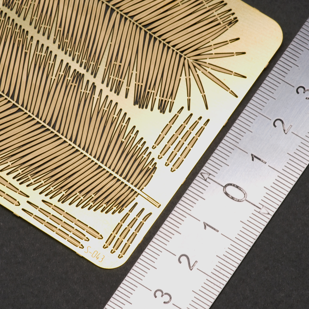 Набор фототравления для имитации листьев кокосовой и финиковой пальмы в масштабе 1/30-1/35. Содержит два больших листа и россыпь отдельных мелких листочков.