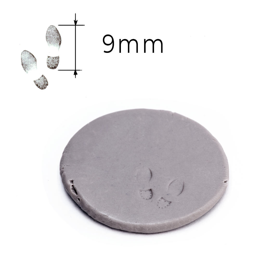 Изготовлен из резины, что позволяет эффективно оставлять как плоские отпечатки краской как штампом, так и объемные следы в двухкомпонентных или полимерных пластиках.
