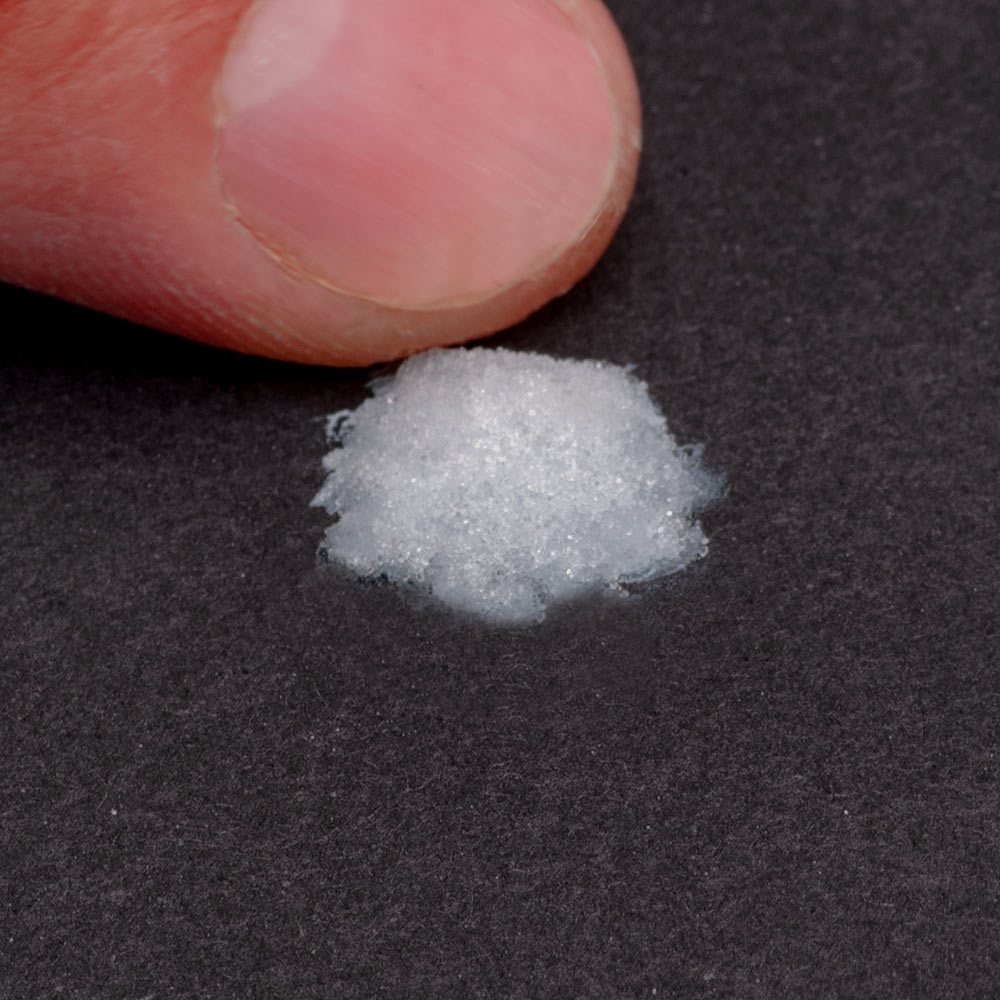 Данный материал, выполненный из полимерных смол, прекрасно имитирует подтаявший и подмерзший снег, состоящий из комочков льда. Может быть нанесен как на глянцевый лак так и на клей пва, а также может использоваться в смеси с ними в виде пасты, для достижения эффекта комков снега.