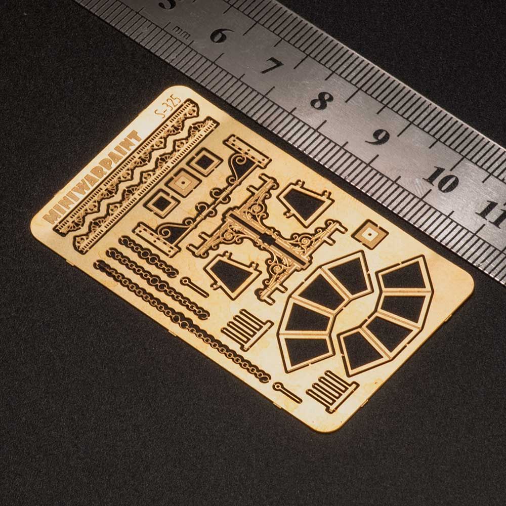 Плата фототравленой латуни с деталями фонарей, кронштейнами и элементами креплений.