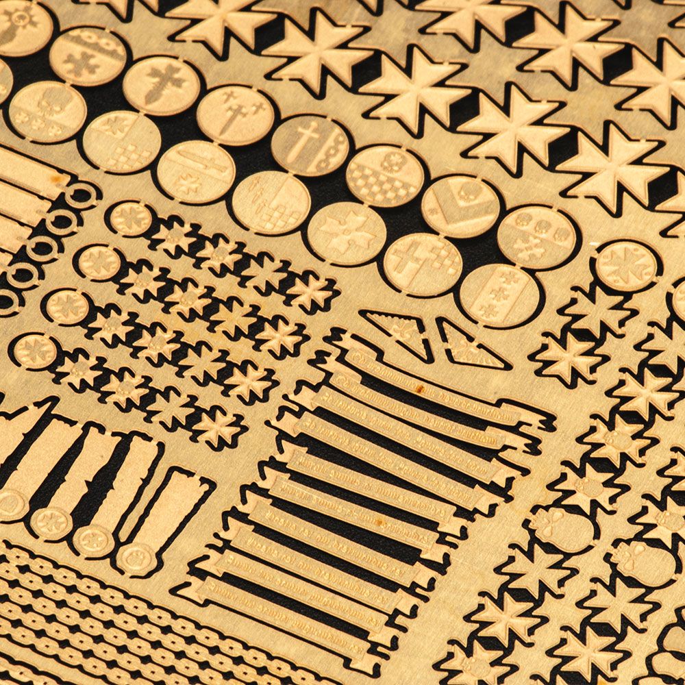 Набор содержит элементы украшений доспехов и оружия спейсмаринов ордена Черные Храмовники (Balck Templars) вселенной Вархаммер 40000 (Warhammer 40K) и служит для дополнительного украшения оригинальных миниатюр производства компании Геймз Воркшоп.