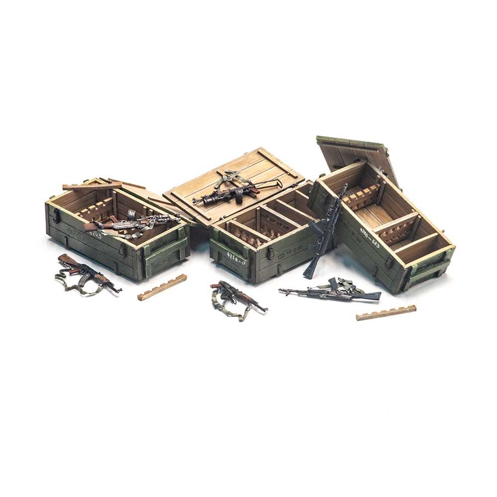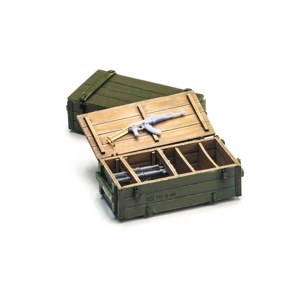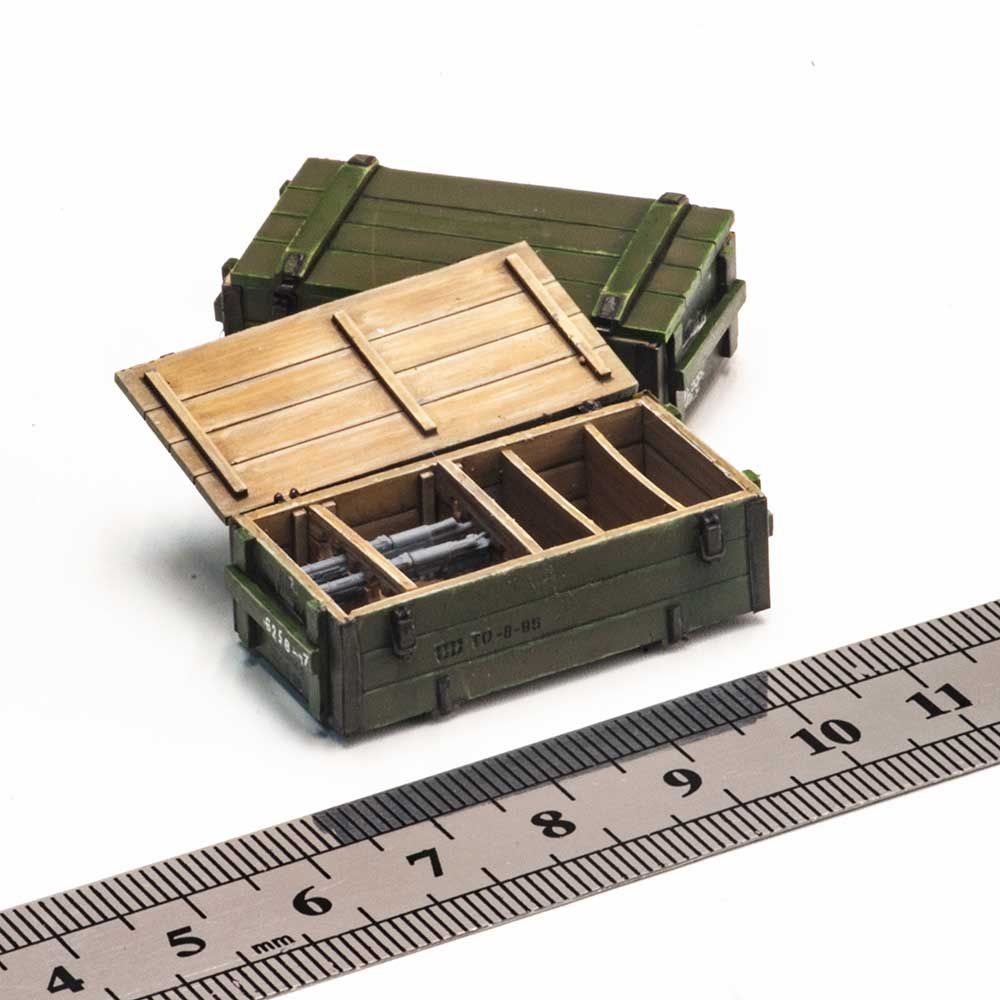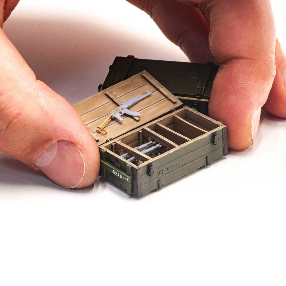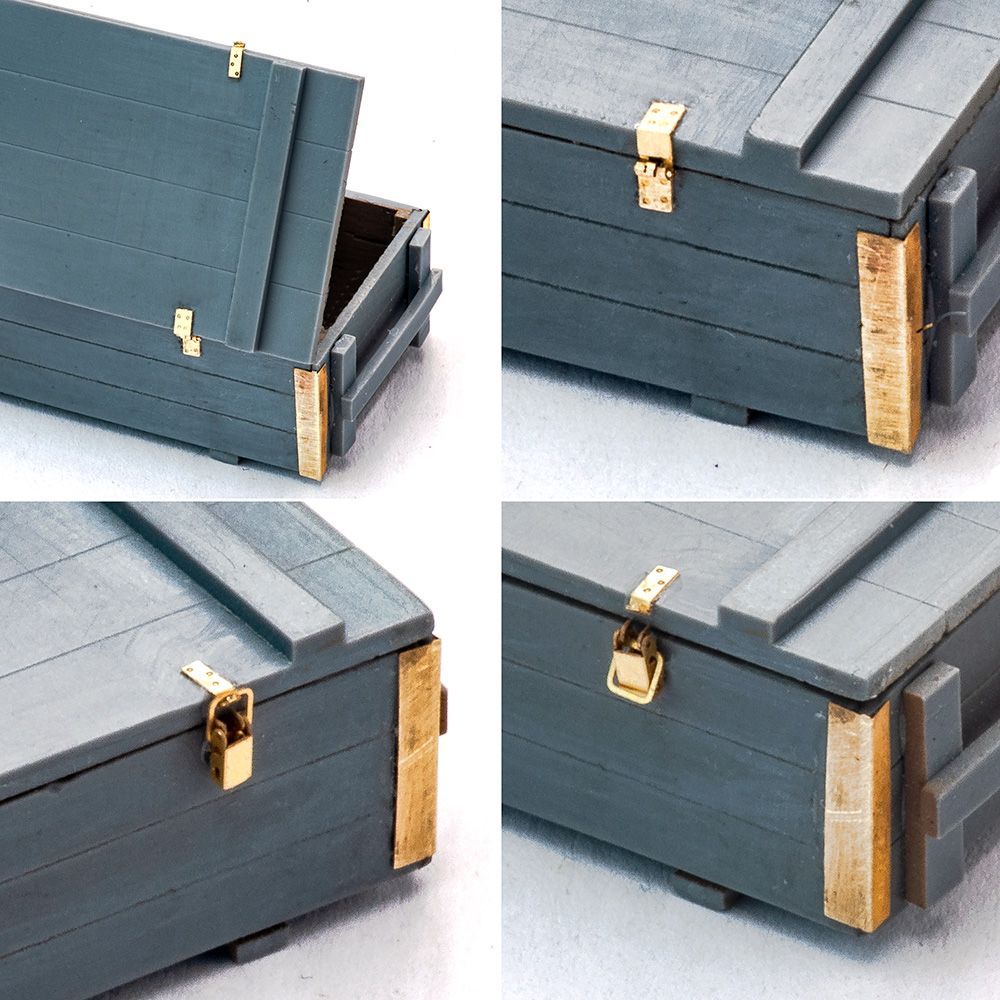 Набор включает в себя смоляные детали, плату фототравления с имитацией замков, петель и обивки ящика, а так же декаль с характерной маркировкой