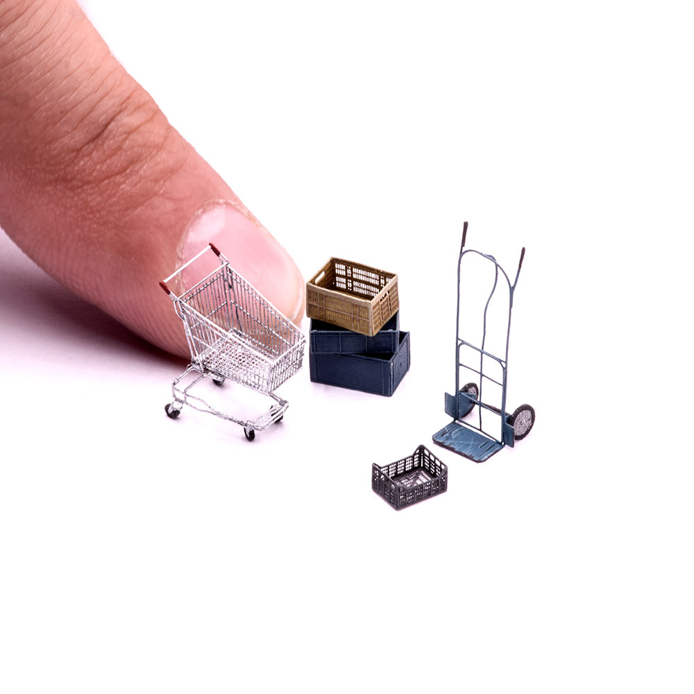 Набор из фототравленой латуни для создания пластиковых ящиков для хранения, овощных и продуктовых пластиковых ящиков, грузовых и покупательских тележек. Для фигур масштаба 1/72 и 1/87, диорам и макетов