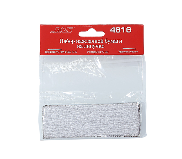 JAS 4616 Набор наждачной бумаги на липучке P80, P120, P180 30x90 мм 6 шт.