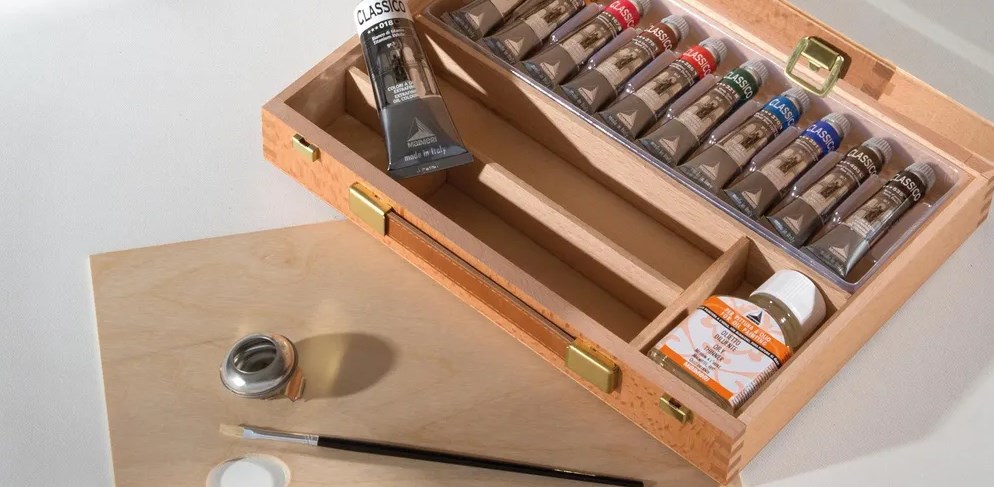 Вопросы и ответы по товару Набор масляных красок Maimeri Classico в деревянном ящике 20 х 30 см + аксессуары
