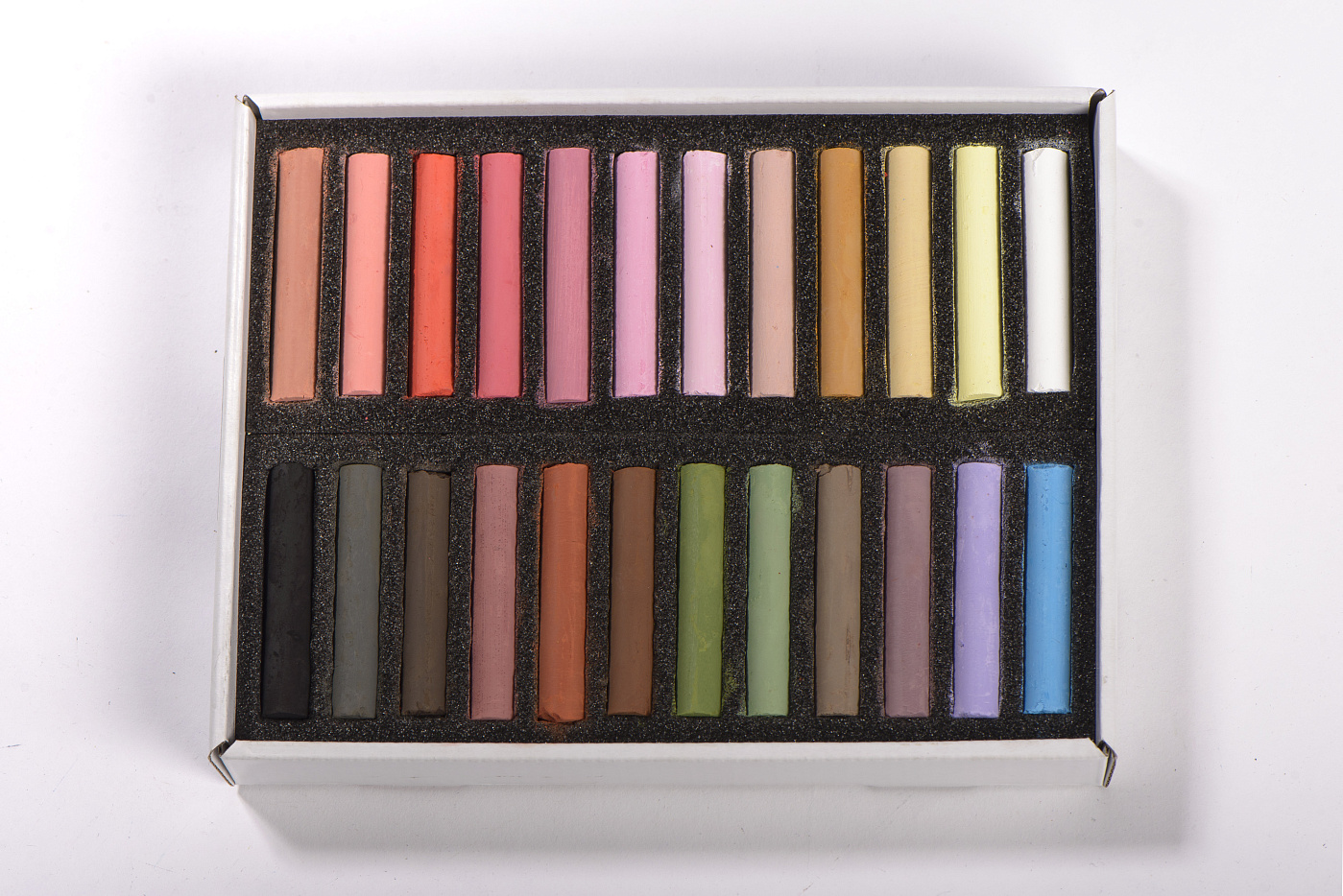 В наборе 24 мелка пастели разных цветов.