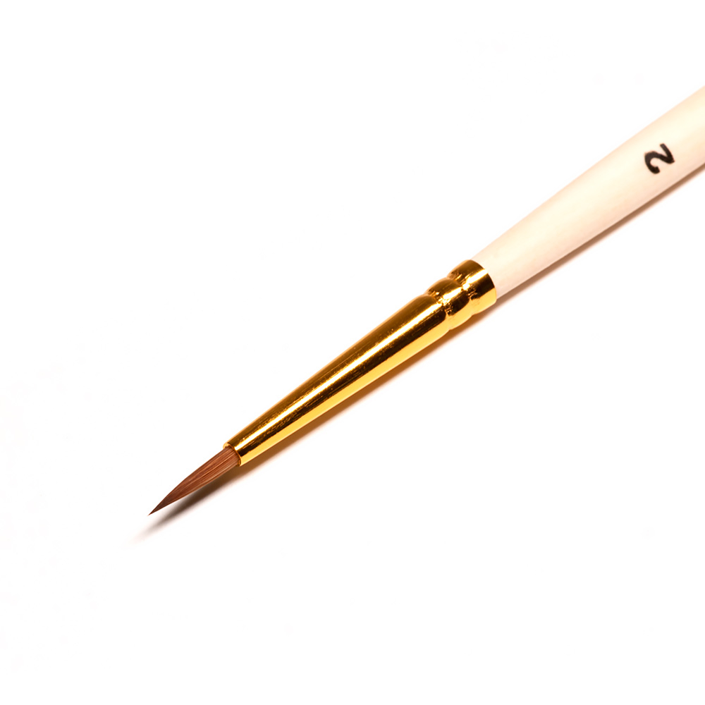 Кисть Roubloff колонок, круглая укороченная 2, ручка короткая, пропитка лаком, желтая обойма.