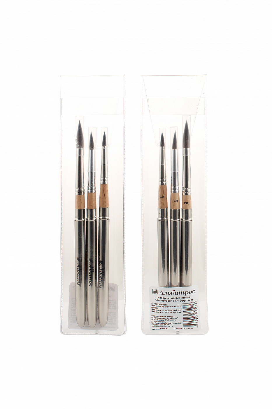 Вопросы и ответы по товару Набор складных круглых кистей Альбатрос, 3 шт. (синтетика №3, куница №6, соболь №5)