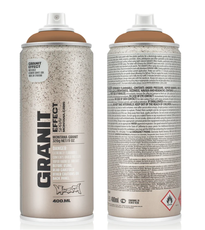 Montana краска гранит-эффект - декоративная отделочная аэрозольная краска на водной основе. Благодаря специальному составу создает по фактуре и цвету эффект гранитной поверхности. Краска может наноситься на различные поверхности и находит свое применение в художественных мастерских, для декоративной покраски предметов интерьера и для хобби.