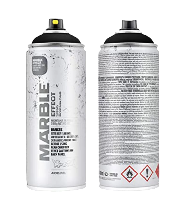 Montana краска мрамор-эффект - декоративная отделочная аэрозольная краска. Благодаря специальному составу создает по фактуре и цвету эффект мраморной поверхности. Краска может наноситься на различные материалы, такие как: дерево, бумага, картон, холст, стекло, металл, керамика, фарфор, камень. Устойчивость краски к внешним воздействиям увеличивается при покрытии слоем бесцветного лака.