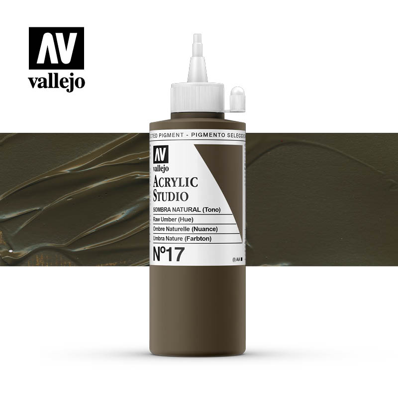 Краска Vallejo Acrylic Studio #17 Raw Umber (Умбра натуральная), 200 мл