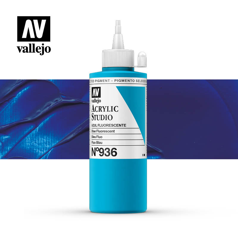 Краска Vallejo Acrylic Studio #936 Fluorescent Blue (Синий флуоресцентный), 200 мл