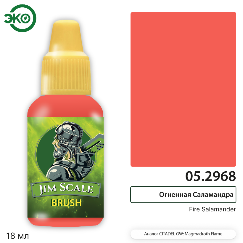 Краска акриловая Jim Scale 05.2968, контраст, цвет Огненная Саламандра (Fire Salamander), 18 мл
