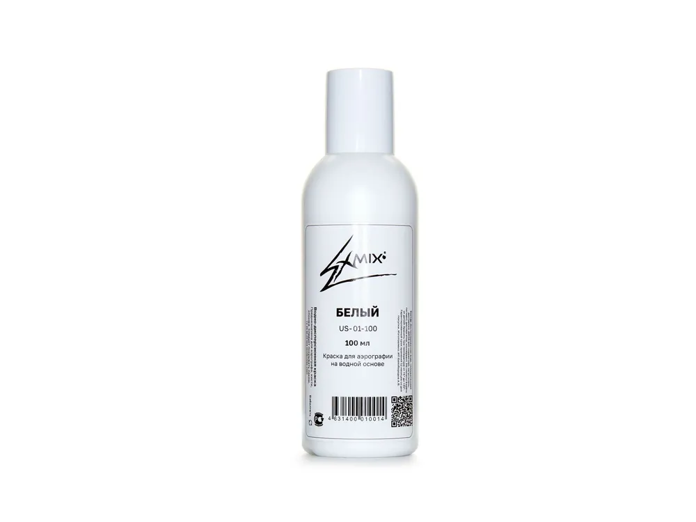 Белая краска Exmix изготавливается на основе диоксида титана тонкого помола, введённого в полиуретановую дисперсию на водной основе, что позволяет использовать её с любыми соплами аэрографа.