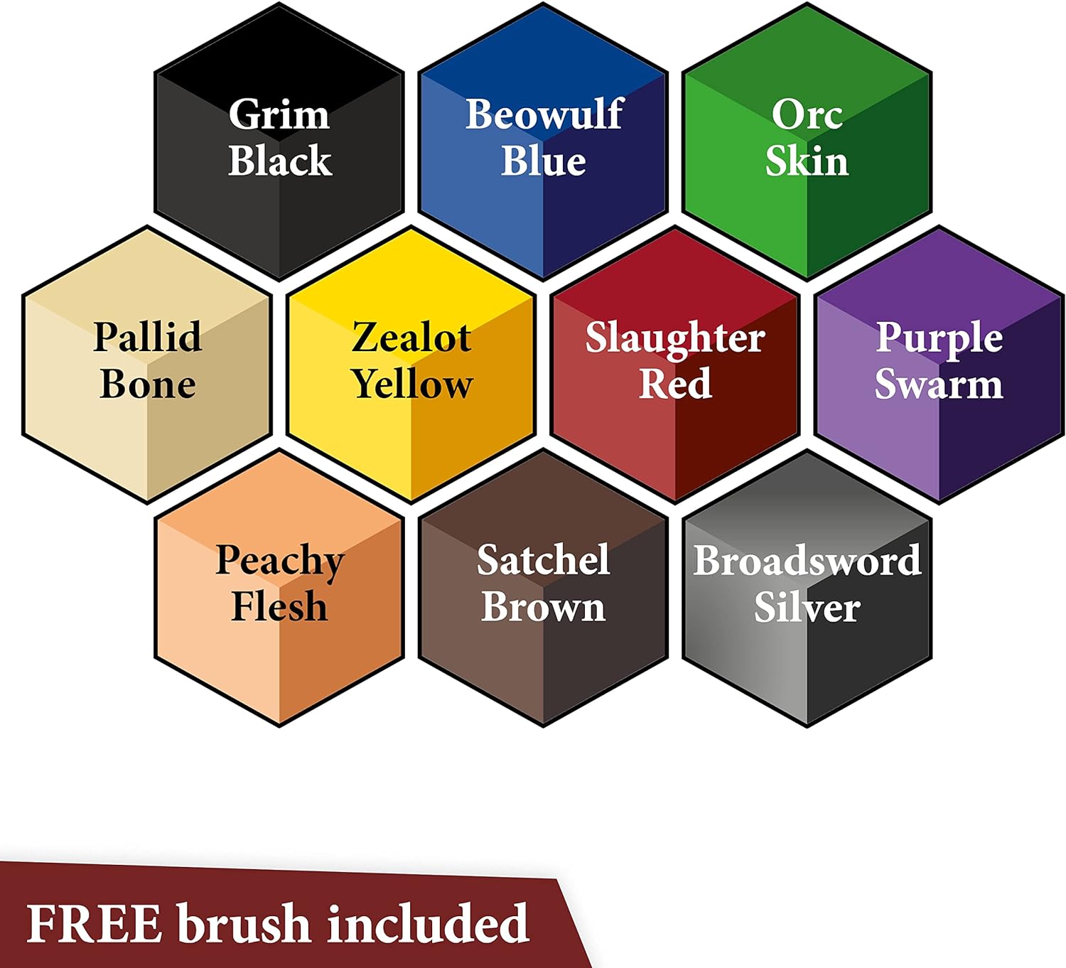 В коробке 10 акриловых красок основных цветов для быстрой покраски - в баночках по 18 мл, а также кисточка.
