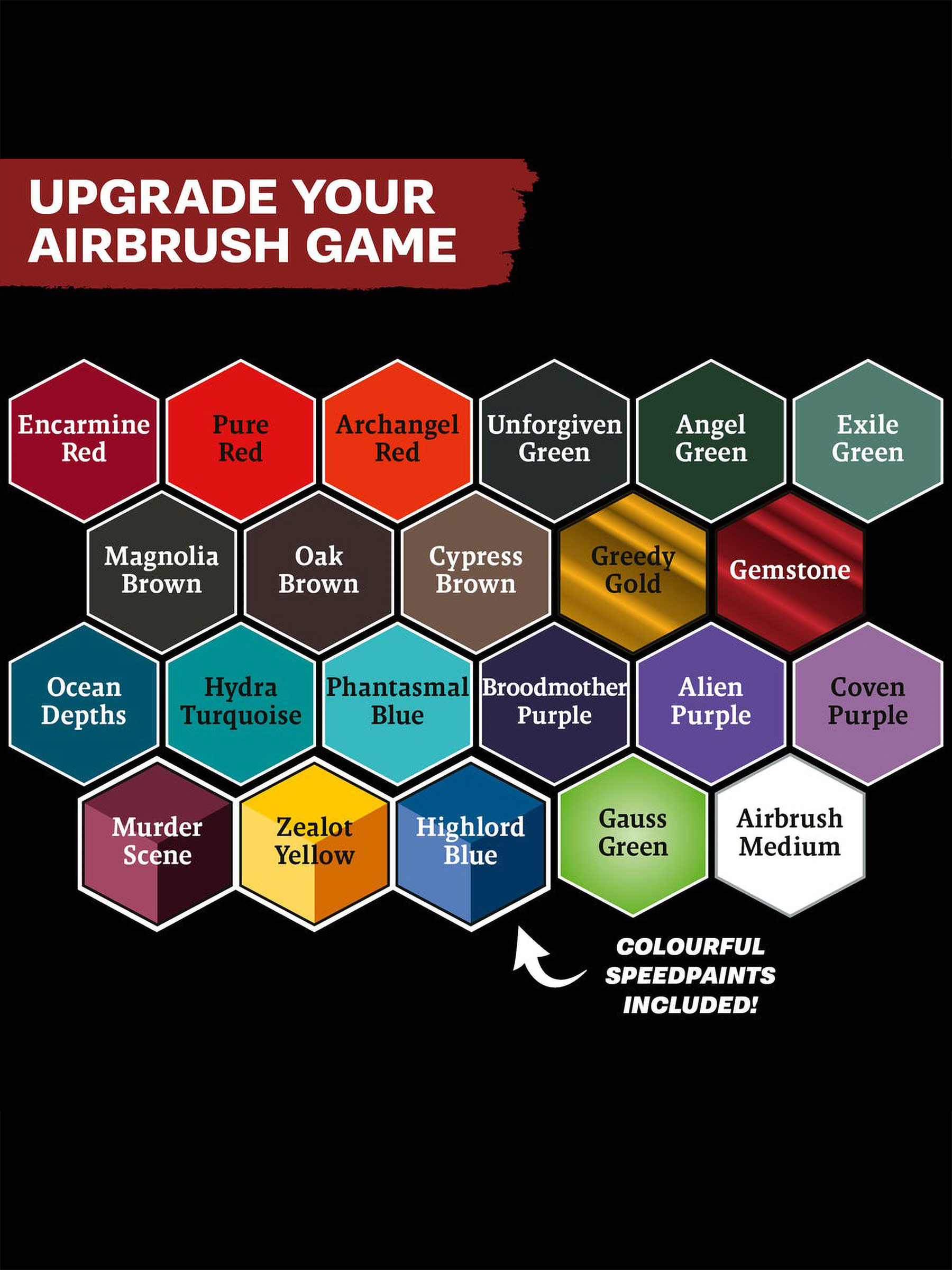 Внутри вы найдете 5 профессионально составленных цветовых триад , идеально подходящих для создания гладких переходов от базы к высветкам без лишних усилий. Дополните их 3 лучшими Speedpaints – отлично подходят для фильтрации и создания эффектов просвечивания. А завершите работу яркими флуоресцентными и переливающимися металликами. Все краски готовы к использованию сразу после открытия — не нужно ни смешивать, ни разбавлять. Просто взболтайте, налейте и распылите .