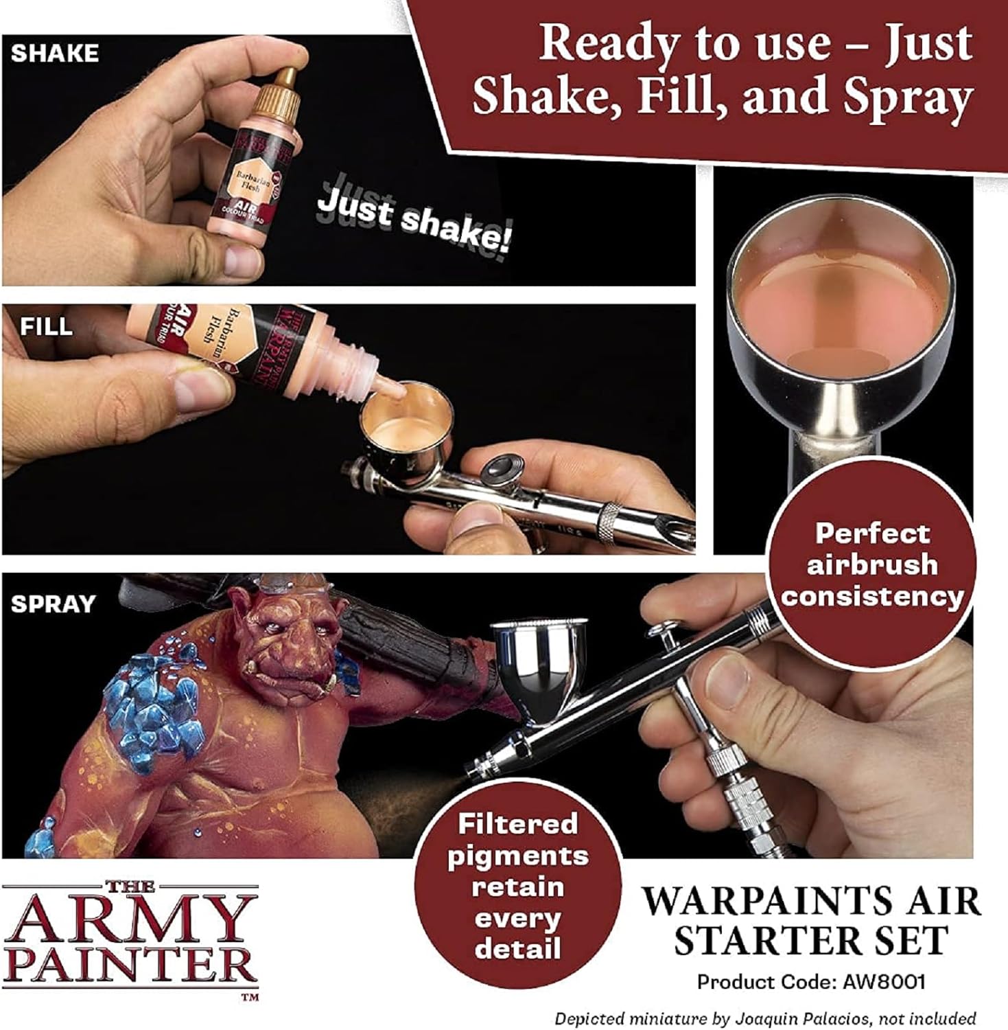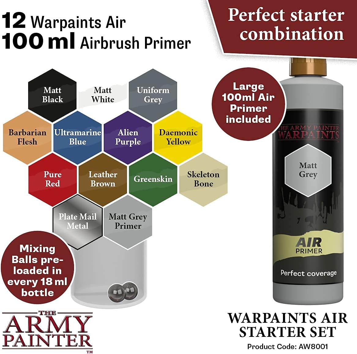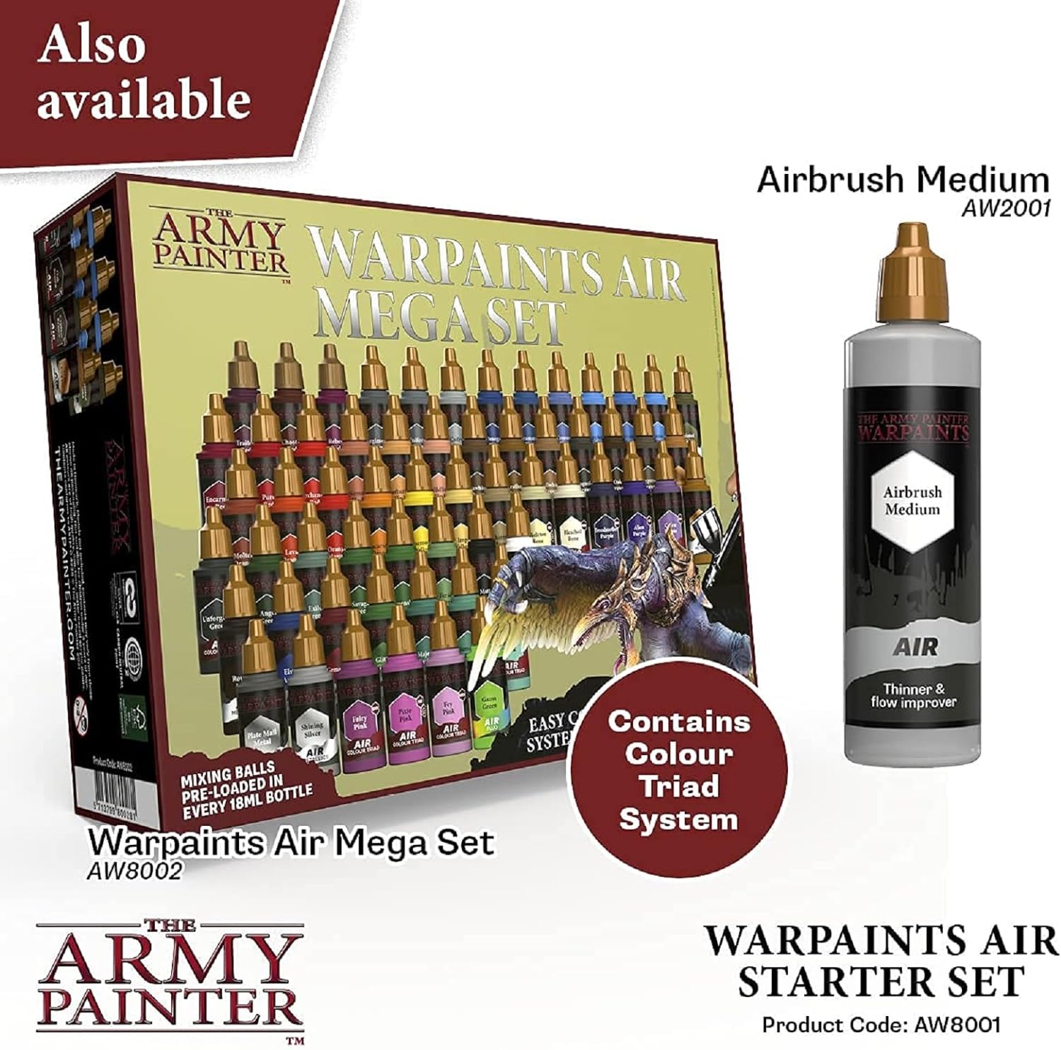 В каждой 18мл баночке набора «Warpaints Air Starter Set» есть металлические шарики, которые обеспечивают быстрое и эффективное взбалтывание краски в баночке. Краски в наборе изготовлены по особой технологии, обеспечивающей максимальную укрывистость, а баночки надёжно закрываются, предотвращая высыхание краски.