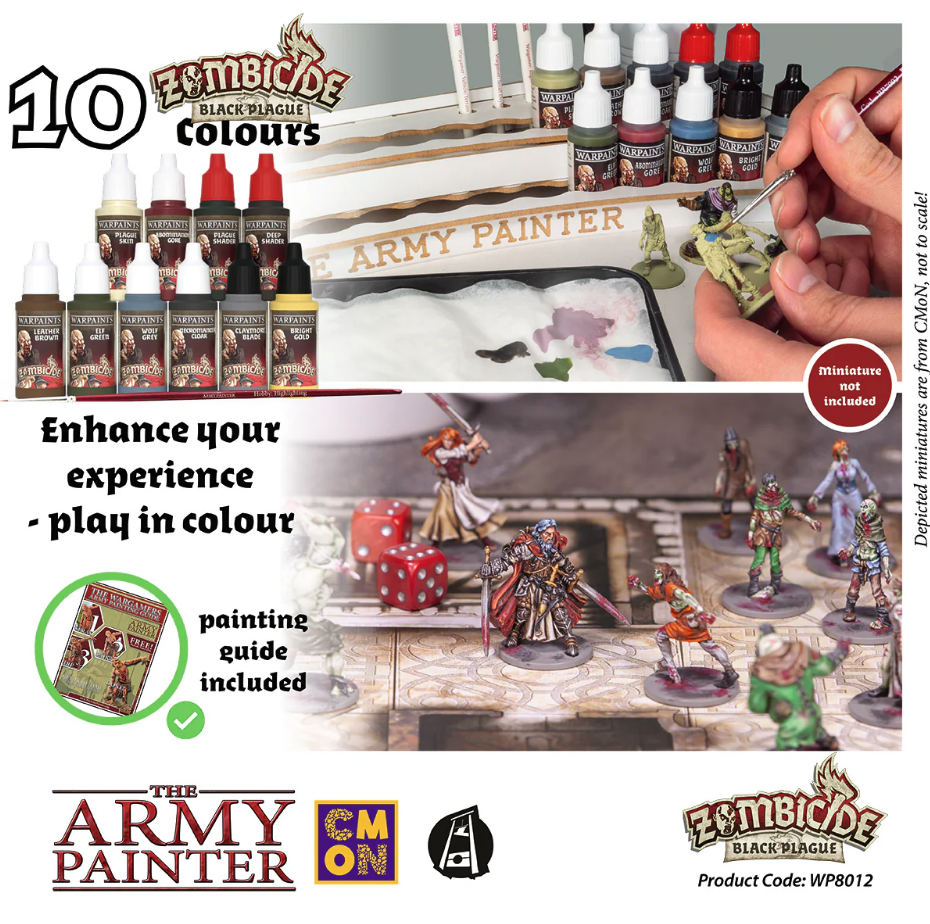 В набор входят 10 специальных красок, разработанных специально для Zombicide: Black Plague & Wulfsburg - этот набор позволит вам улучшить игровой опыт, играя с раскрашенными миниатюрами!