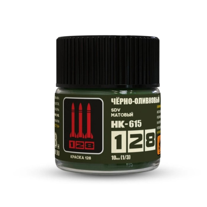 Краска художественная, широкого спектра применения, серии НК от Компании 128. Цвет: НК-615 Чёрно-оливковый,. Назначение цвета: Амуниция Германской армии 2Мв.