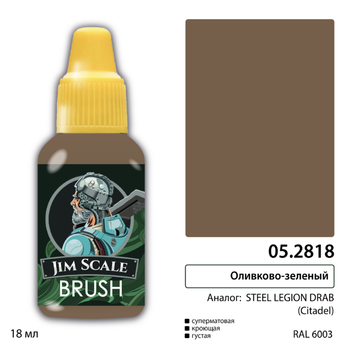 Краска акриловая Jim Scale 05.2818, цвет Оливково-зеленый (STEEL LEGION DRAB), 18 мл