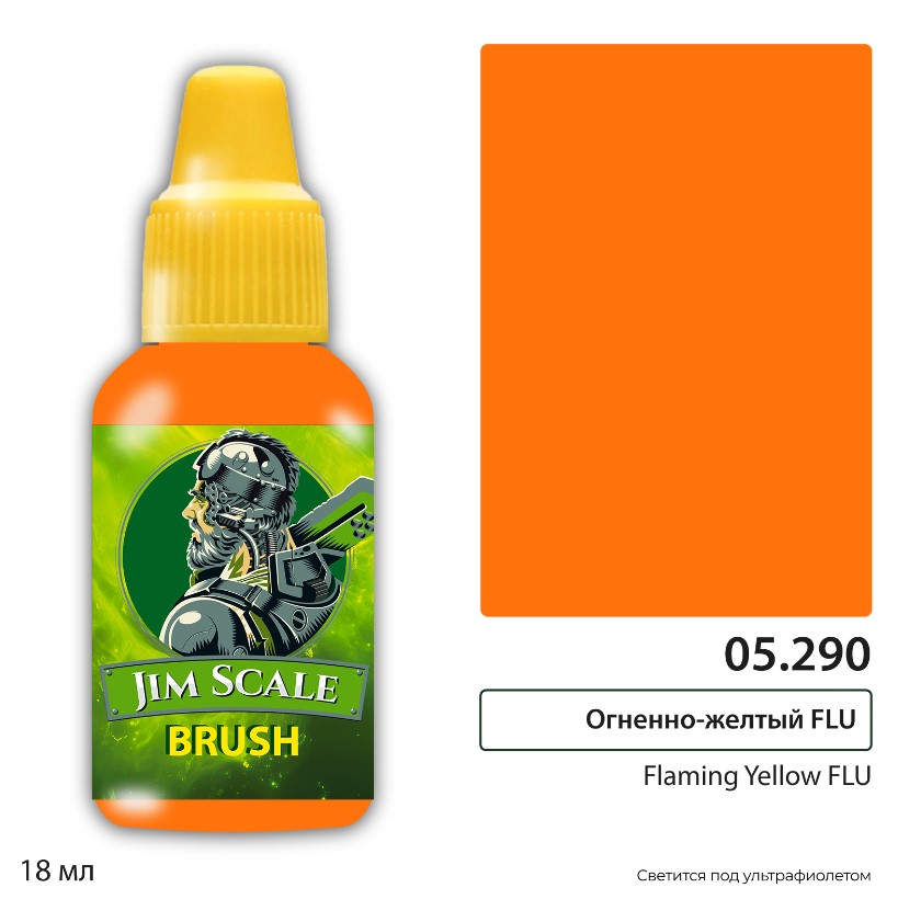 Краска акриловая Jim Scale 05.290, цвет Огненно-желтый (Flaming Yellow FLU), 18 мл