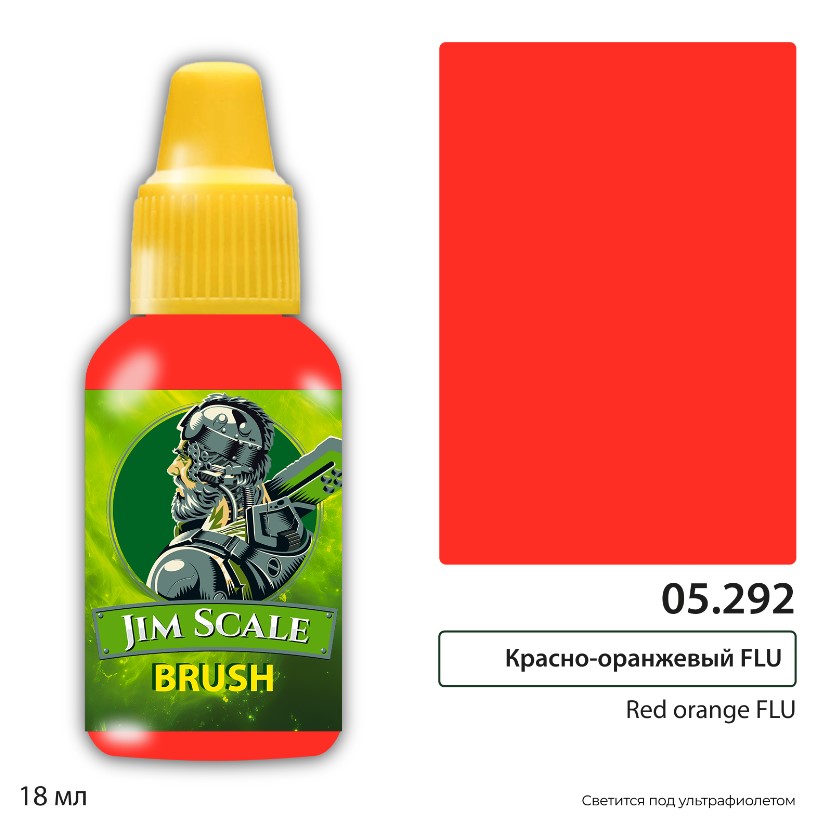 Краска акриловая Jim Scale 05.292, цвет Красно-оранжевый (Red Orange FLU), 18 мл