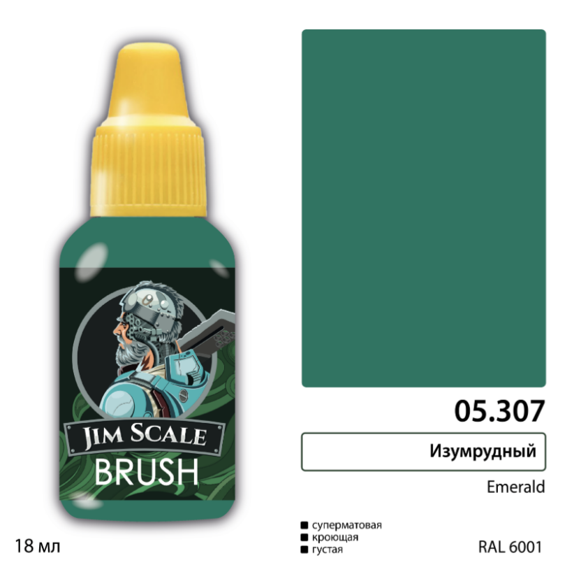 Краска акриловая Jim Scale 05.307, цвет изумрудный, 18 мл