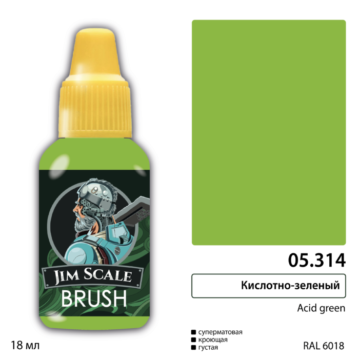 Краска акриловая Jim Scale 05.314, цвет Кислотно-зеленый / Acid green, 18 мл