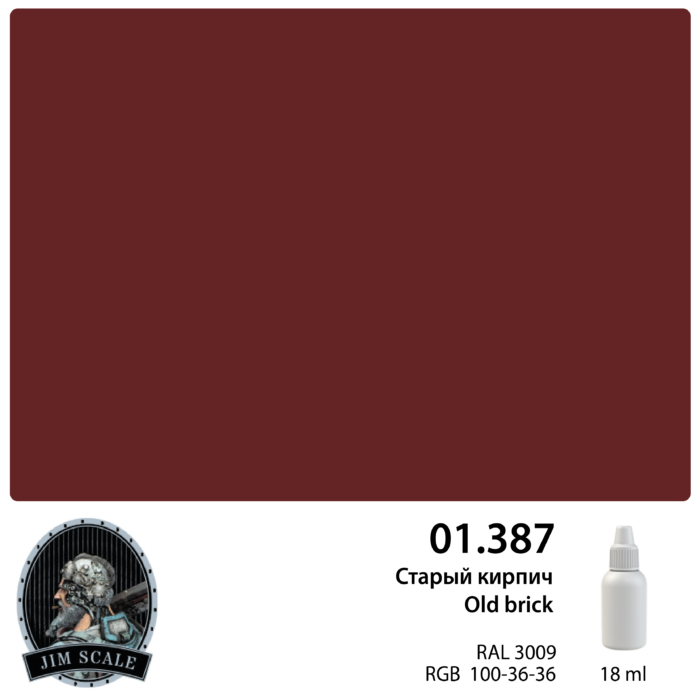 Краска акриловая Jim Scale 01.387, цвет Старый кирпич Old brick (RAL 3009), 18 мл