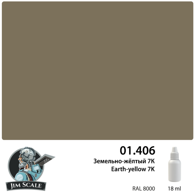 | Код оттенка по производителю | 01.406 Земельно-жёлтый 7К (RAL 8000) |
