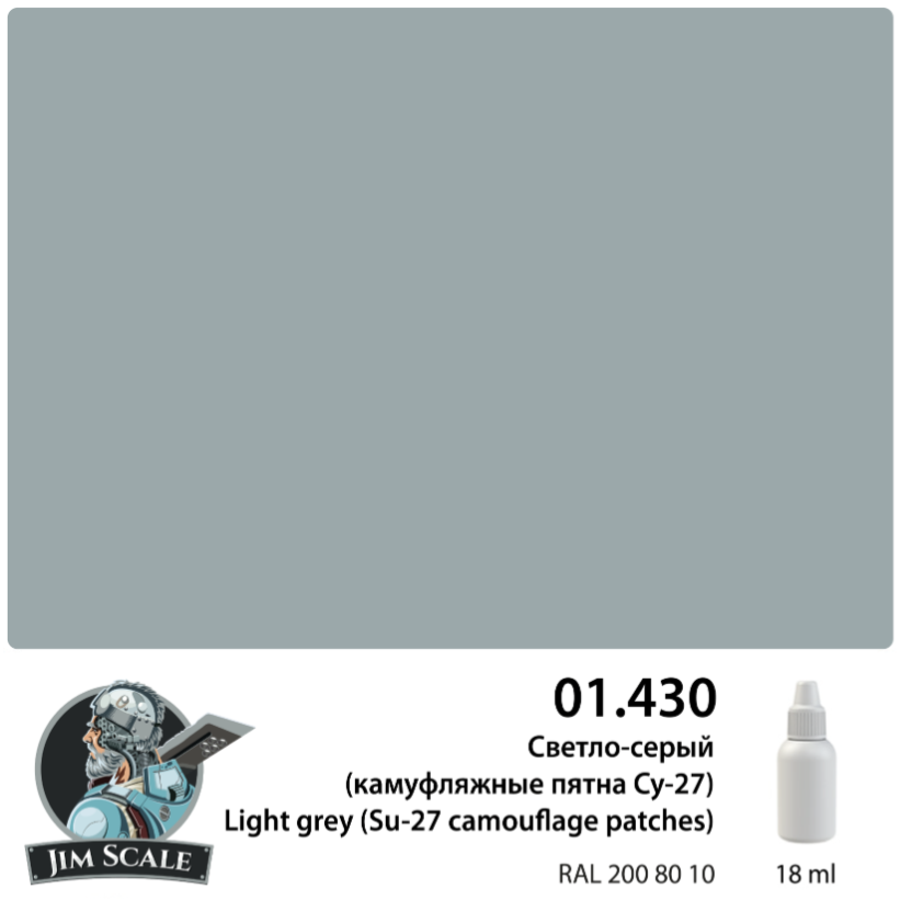 | Код оттенка по производителю | 01.430 Светло-серый (камуфляжные пятна Су-27) Light gray (Su-27 camouflage patches) |