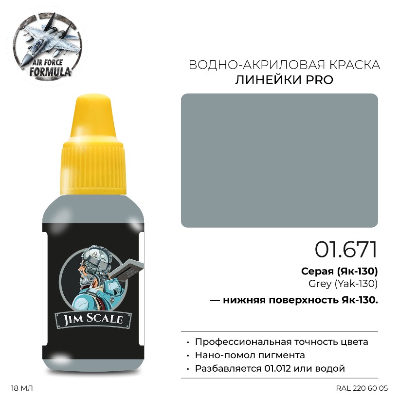 Краска акриловая Jim Scale 01.671 цвет Серая Як-130 (Grey Yak-130), 18 мл