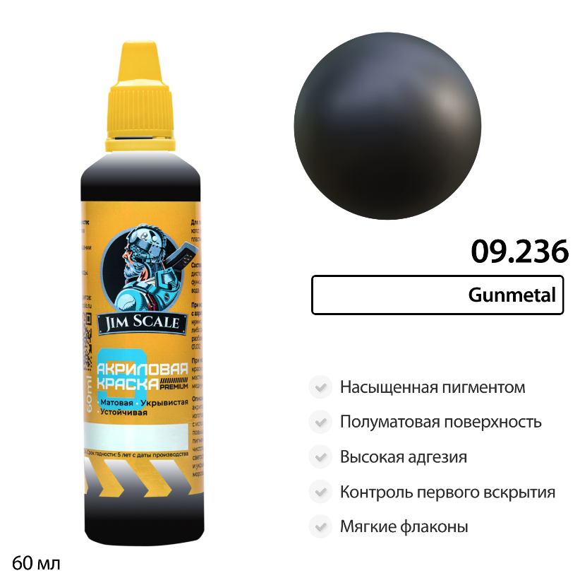 Отзывы покупателей о Краска акриловая универсальная Jim Scale 09.236 цвет Gunmetal (металлик), 60 мл