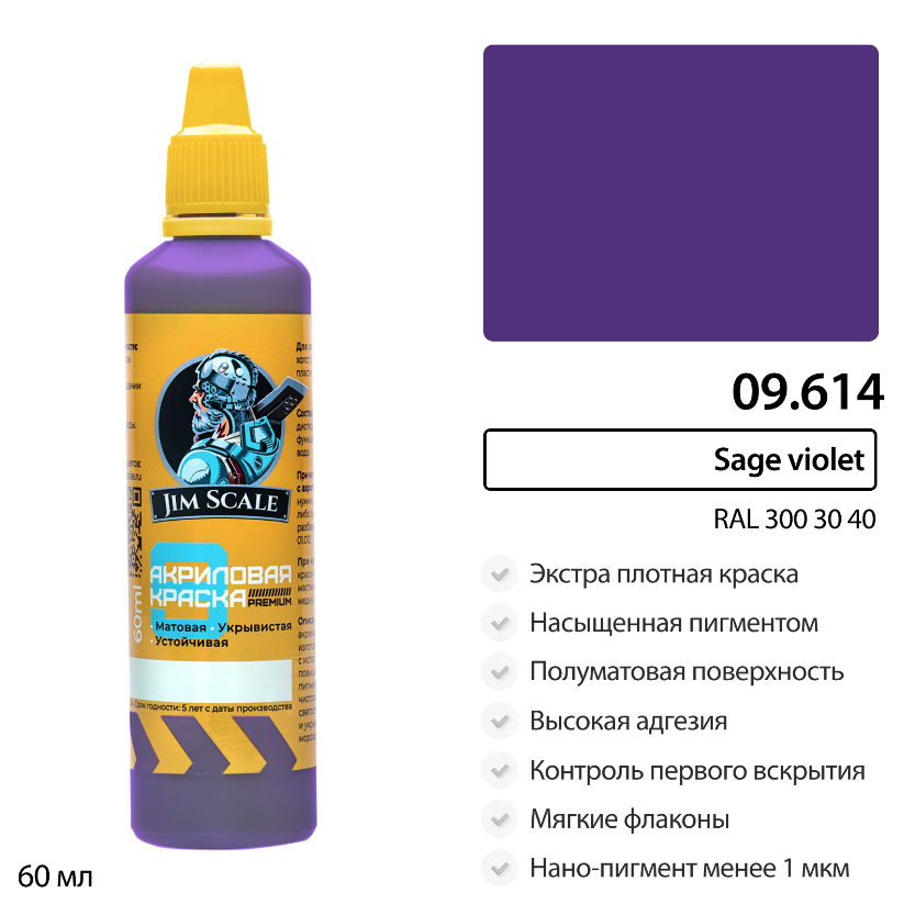 Краска акриловая универсальная Jim Scale 09.614 цвет Sage violet (RAL 300 30 40), 60 мл