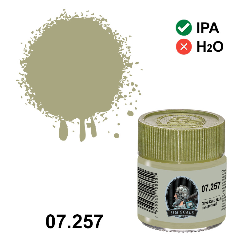 Краска спиртовая Jim Scale, цвет Olive Drab No.9 (выцветший), 10 мл
