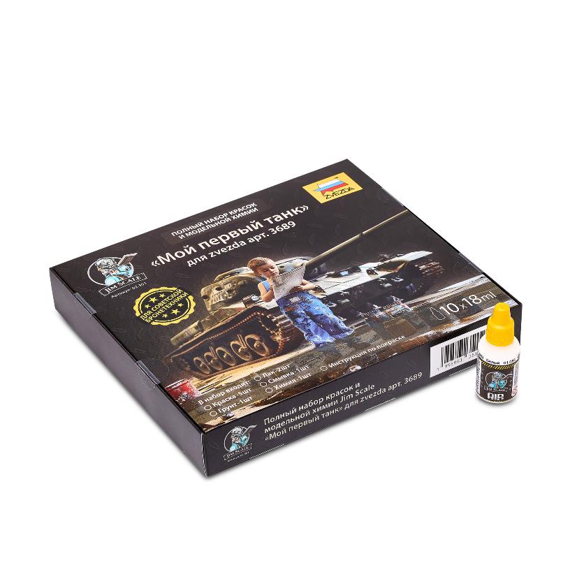 Большой набор красок и химии Jim Scale 02.301 “Мой первый танк”