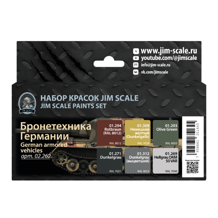 Набор акриловых красок Jim Scale 02.262 “Бронетехника Германии”