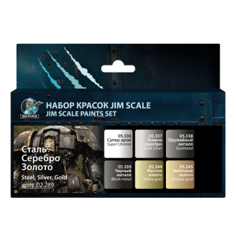 Набор акриловых красок (металликов под кисть) Jim Scale 02.289 Сталь, серебро, золото”