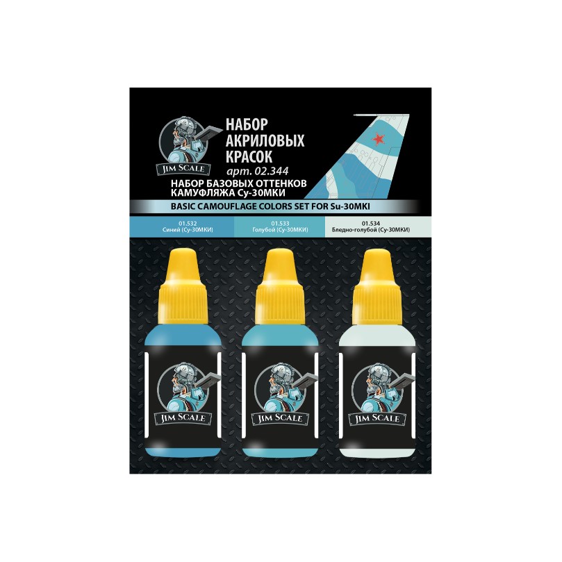 Вопросы и ответы по товару Набор красок Jim Scale 02.344 Базовые оттенки камуфляжа Су-30МКИ, 3 шт.